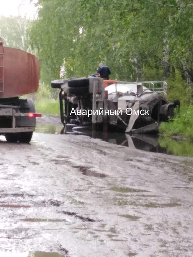 Ямы на омских дорогах стали испытанием не только для легковых автомобилей, но и для большегрузов. Так, на дороге в направлении Больших Полей опрокинулась набок бетономешалка, провалившись в скрытую водой выбоину, сообщили очевидцы в группе «Аварийный Омск». На фотографиях, размещенных в Сети, видно, что грузовой автомобиль лег на бок, утонув колесами в глубокой луже.